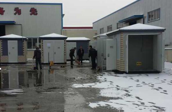 2015年的第一場(chǎng)雪,來(lái)的真是突然。最近由于公司訂單多,工期緊,所以生產(chǎn)任務(wù)繁忙。為了及時(shí)保質(zhì)保量的出貨,大家齊心協(xié)力,克服嚴(yán)寒,加班搶點(diǎn)的趕工。就連今年的第一場(chǎng)雪都沒(méi)時(shí)間好好欣賞就投入到生產(chǎn)搶工中,在廠領(lǐng)導(dǎo)和工人的不懈努力中,終于完成了花果山西游大道箱變、少年宮10KVA箱變和薔薇島旅游開(kāi)發(fā)箱變按時(shí)完工。